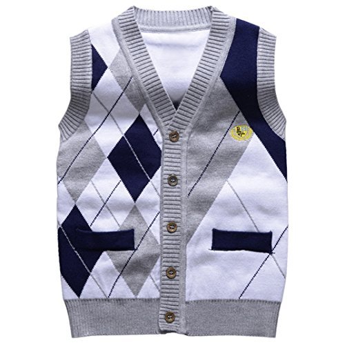 Happy CherryキッズアーガイルウエストコートボタンVネックニットカーディガンセーター US サイズ: M カラー: グレイ