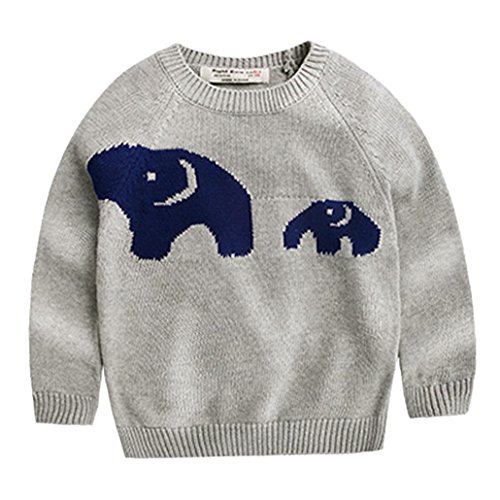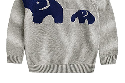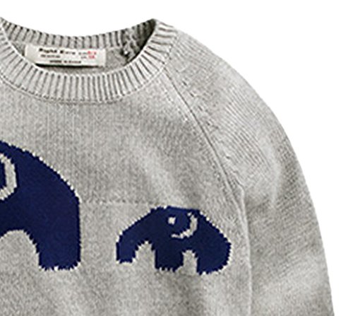 キッズ ニットセーター 子供服 プルオーバー ニット丸首 長袖 編み 秋冬 暖かい 防寒 セーター 可愛い 象柄 女の子 男の子 卒園式 結婚式 グレー 130cm