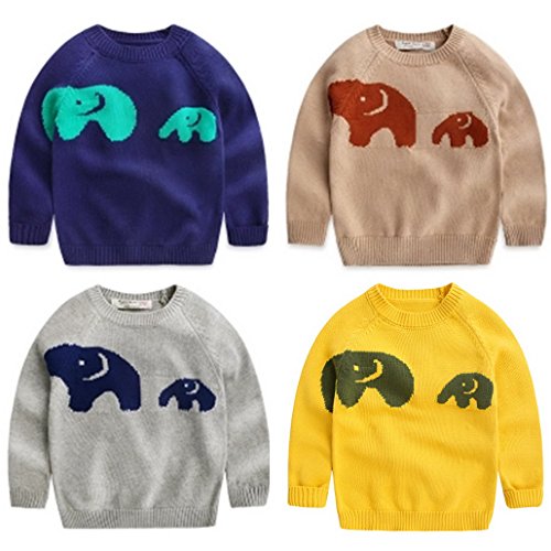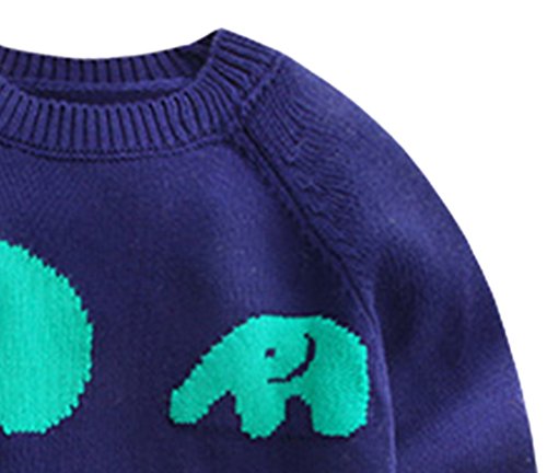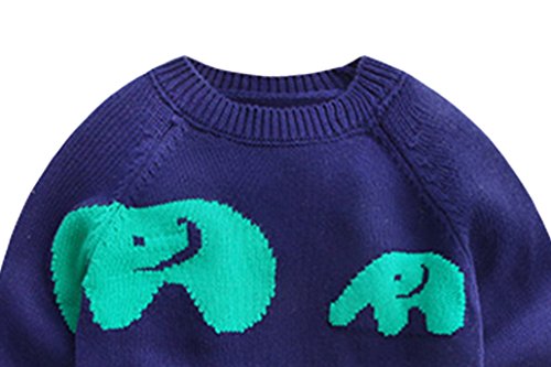 キッズ ニットセーター 子供服 プルオーバー ニット丸首 長袖 編み 秋冬 暖かい 防寒 セーター 可愛い 象柄 女の子 男の子 卒園式 結婚式 ブルー 100cm
