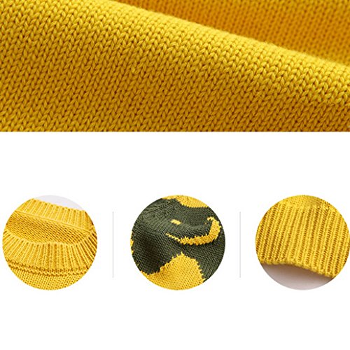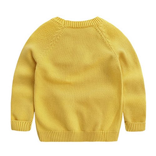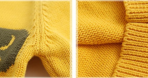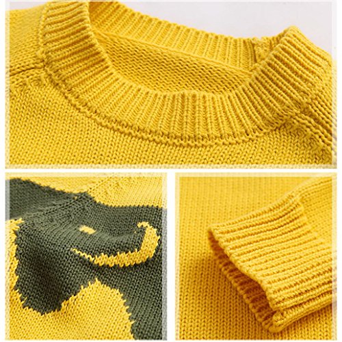 キッズ ニットセーター 子供服 プルオーバー ニット丸首 長袖 編み 秋冬 暖かい 防寒 セーター 可愛い 象柄 女の子 男の子 卒園式 結婚式 イエロー 130cm