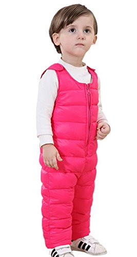 Happy Cherry ダウンサロペット キッズ ベビー オールインワン ゆったり あったか カジュアル 秋冬 防寒 オーバーオール ローズレッド 100cm