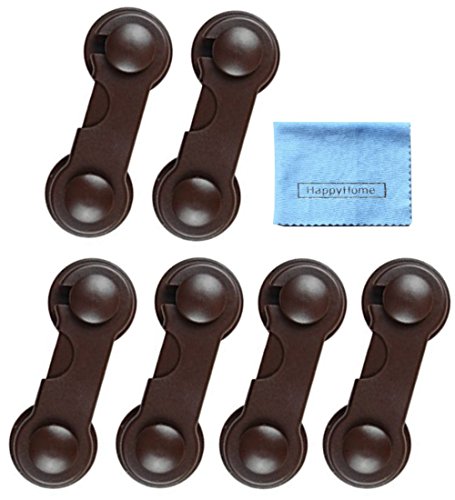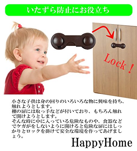 【HappyHome】ワンタッチ式 ドアストッパー 6個セット ベビー ガード 引き出し 扉 回転式 ロック いたずら防止 地震対策 クロス付き (ブラウン)