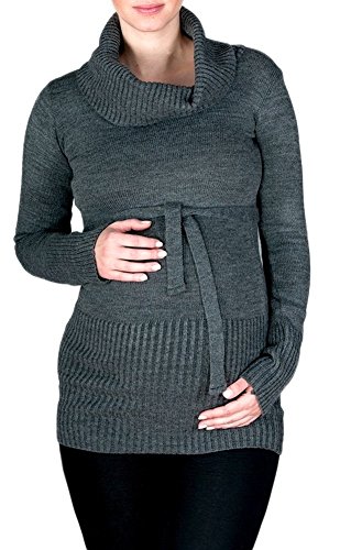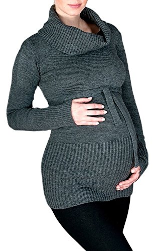 - かわいいマタニティ、リブ付きニットチュニックタートルネックとベルトは、妊娠中と後に着て頂けます。