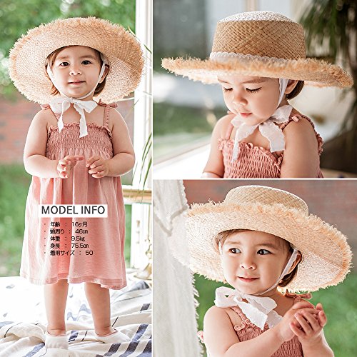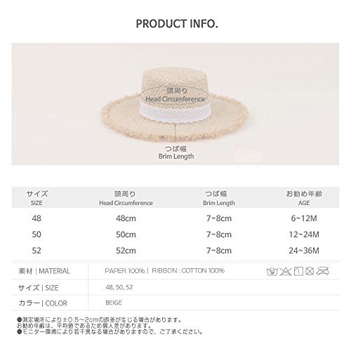 ボニタレース麦わら帽子★ベビー服 韓国ベビー服 韓国子供服 韓国こども服 韓国ファッション 麦わら帽子 ベビーハット ベビー夏帽子 おしゃれ 50cm 48cm 春 夏 秋 女の子 外出用 (48)