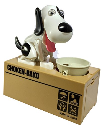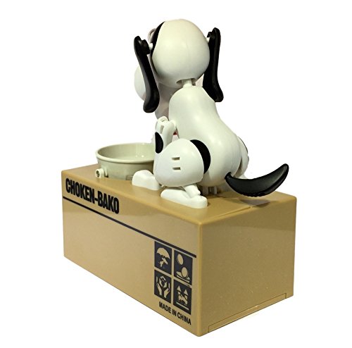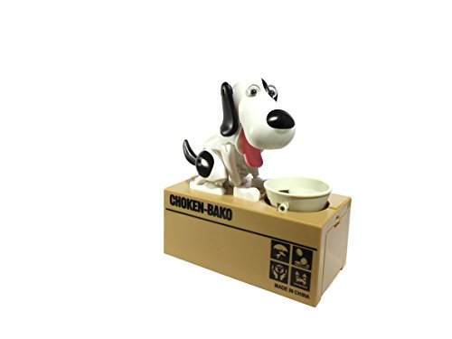 Happy Puppin Choken Bako ロボット犬 ワンちゃんコインバンク&マネーボックス(ホワイト&ブラック)