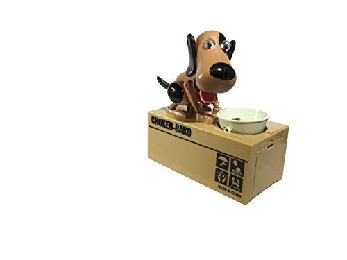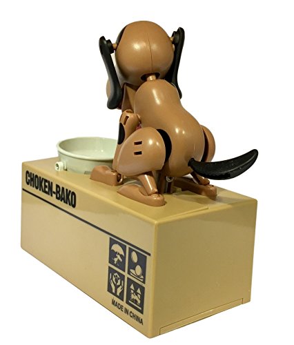 Happy puppin Choken Bakoロボット犬銀行Doggyコインバンク&お金ボックス(ブラック&ブラウン)