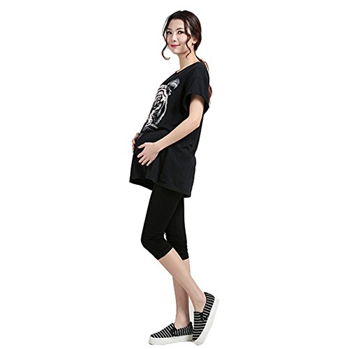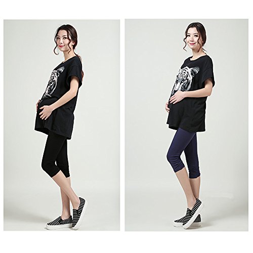 Happy Venture 7分丈 マタニティ パンツ スパッツ レギンス モダール ウエスト ゴム調節可能 薄手 妊婦 産前産後 対応 ストレッチ 弾力バツグン さらさら 4 Colors (ブラック)