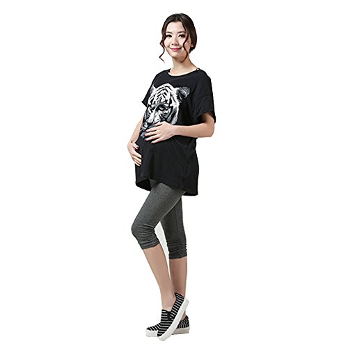Happy Venture 7分丈 マタニティ パンツ スパッツ レギンス モダール ウエスト ゴム調節可能 薄手 妊婦 産前産後 対応 ストレッチ 弾力バツグン さらさら 4 Colors (チャコール)