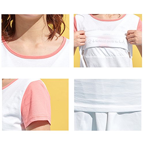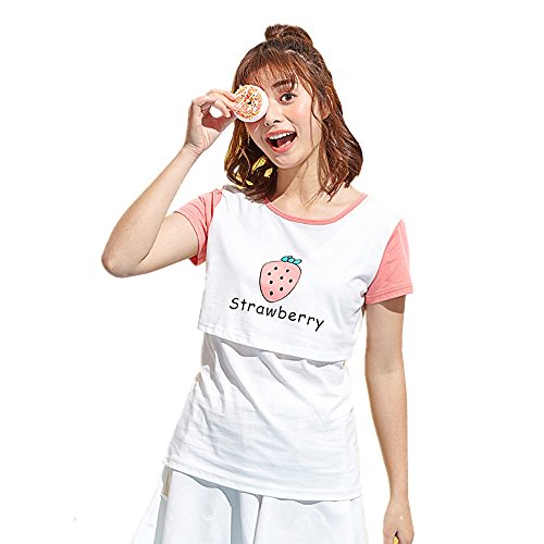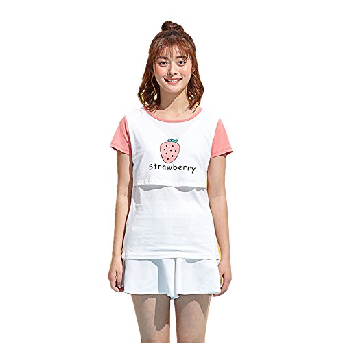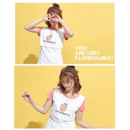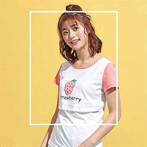 Happy Venture マタニティ 授乳Tシャツ 半袖 産前産後 ママ 綿 100%コットン 授乳ウエア 夏 キュートなイチゴ柄 (XXL)