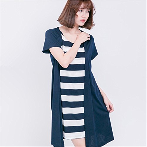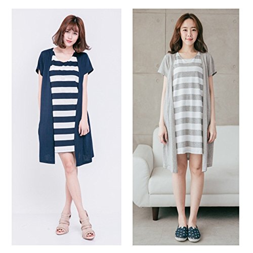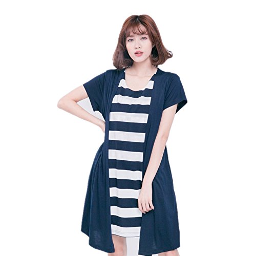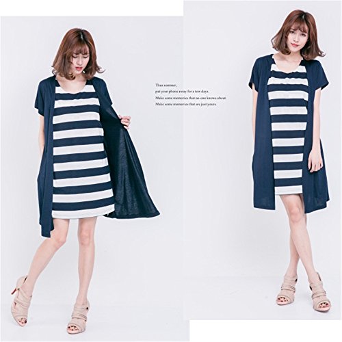 Happy Venture マタニティ 授乳 ワンピース 半袖 夏 ボーダー柄 授乳口付 膝丈 マタニティ 産前産後 ママ ゆったり 体型カバー (ネイビー)