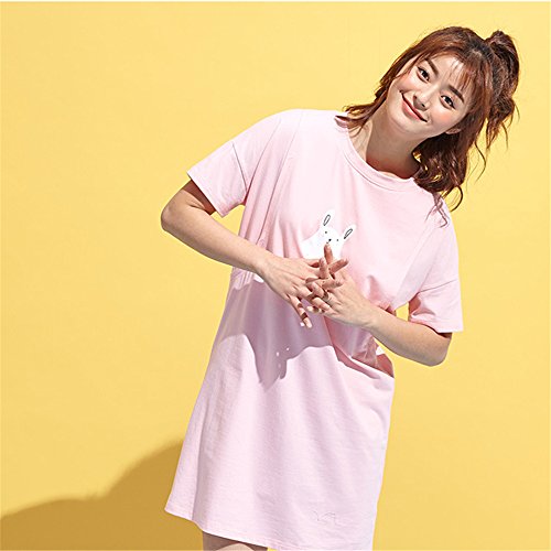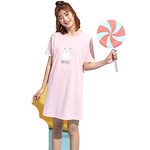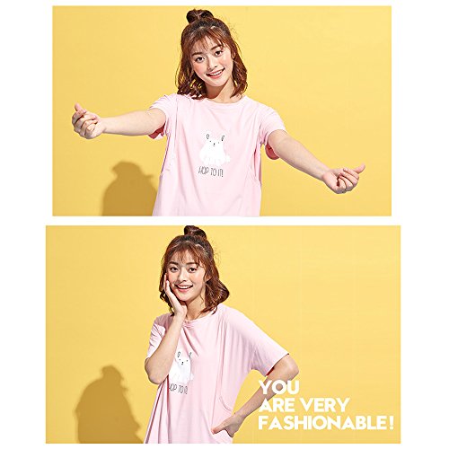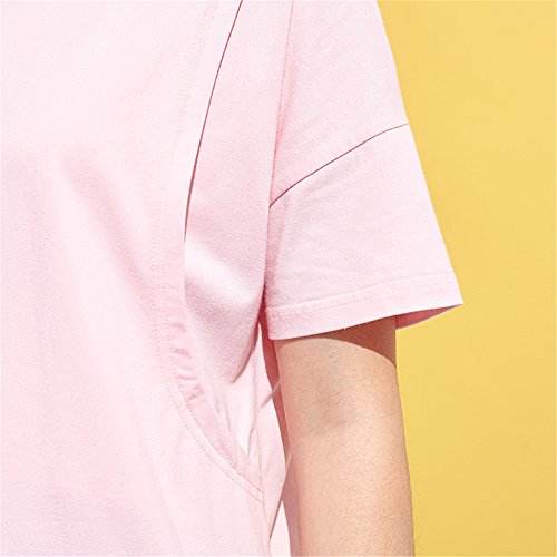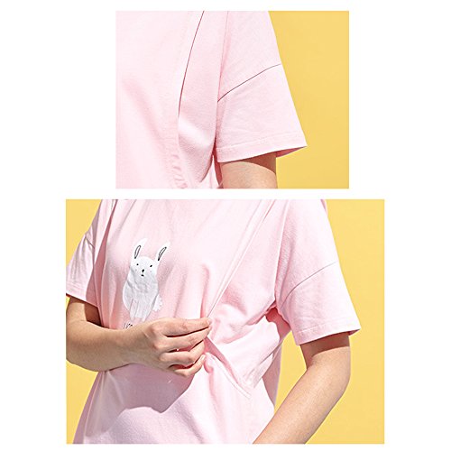 Happy Venture 授乳 ワンピース 半袖 授乳口付 マタニティ 産後 ママ 可愛い 綿 コットン 授乳ウエア 夏 ピンク (L)