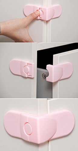 Happy cherry ベビーガード 直角ロック 多目的ストッパー 引き出しロック 安全ロック スナップ 傷防止 4個セット 2色あり 色ランダム出荷