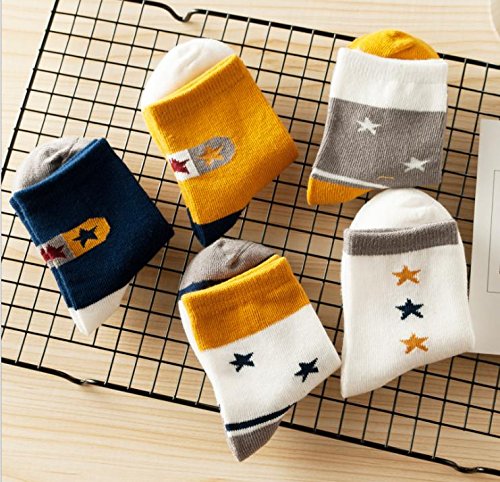 ( Angel Kids ) ナチュラルカラー 子供 靴下 星模様 ボーダー クルー丈 のびのび キッズ ソックス (14-16㎝) …