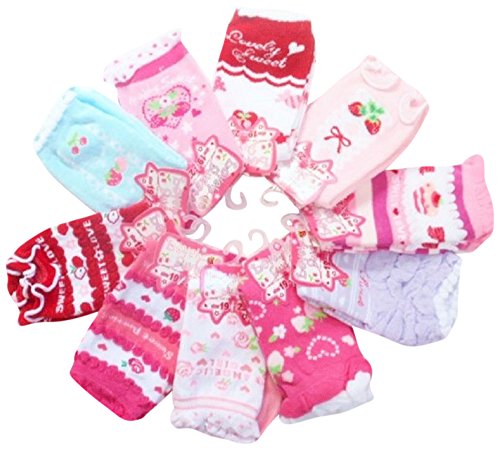 ( Angel Kids ) キュート 女児 ジュニア キッズ 靴下 クルー丈 ピンク 女の子 スクール 10足セット (19~23㎝) …