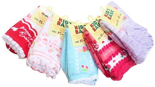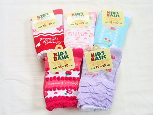 ( Angel Kids ) かわいい キッズ 靴下 女児 ジュニア クルー丈 ピンク 女の子 5足 セット (15?19?★B) …