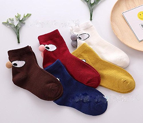 ( Angel Kids ) ボンボン 飾り付 靴下 キッズ 5足 カラフル セット 子供 変な顔 バックスタイル (15-17㎝) …