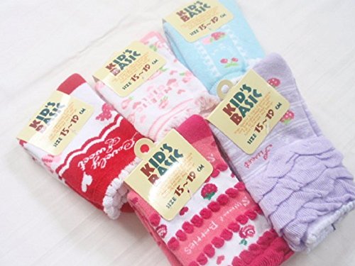 ( Angel Kids ) かわいい キッズ 靴下 女児 ジュニア クルー丈 ピンク 女の子 5足 セット (19~23㎝★B)