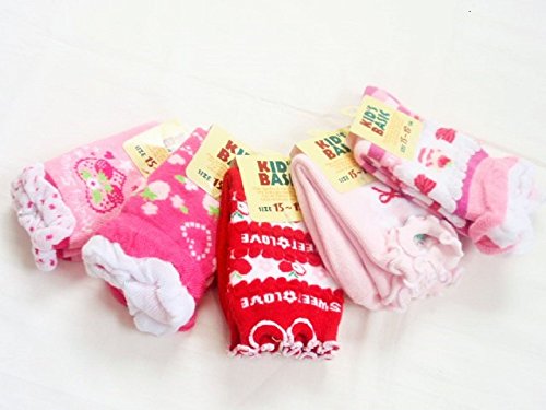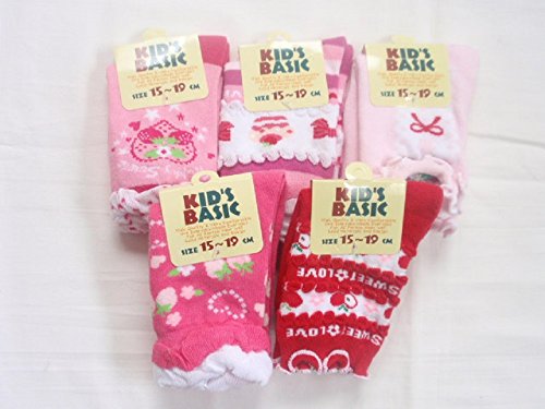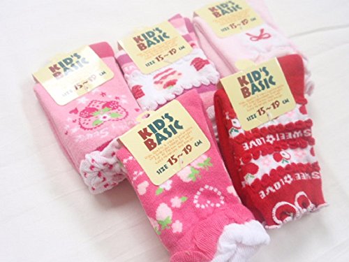 ( Angel Kids ) かわいい キッズ 靴下 女児 ジュニア クルー丈 ピンク 女の子 5足 セット (15~19㎝★A)