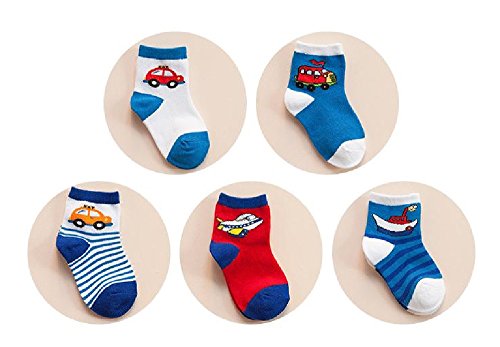 ( bambini ) のりもの模様 ベビー キッズ 靴下 5足 セット ボーダー ブルー 男の子 子供 ソックス (14-17㎝)