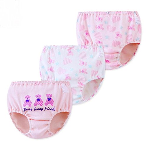 ( Angel Kids ) 子供 下着 パンツ 3枚セット くまさん ユニコーン 可愛い 柄 キッズ ベビー ショーツ (120㎝, ピンク)