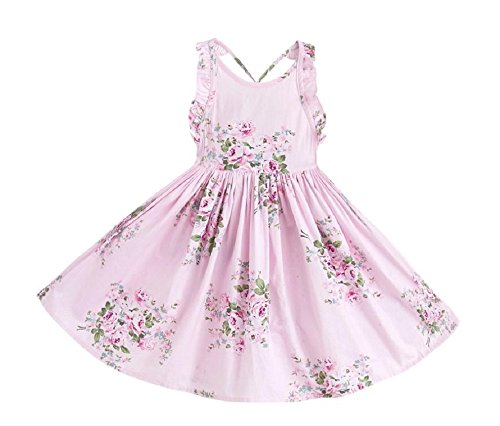 ( Angel Kids ) 花柄 エプロン ドレス 夏 ワンピース ふんわり 広がる スカート ベビー キッズ … (120cm, ピンク.)