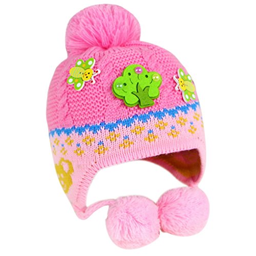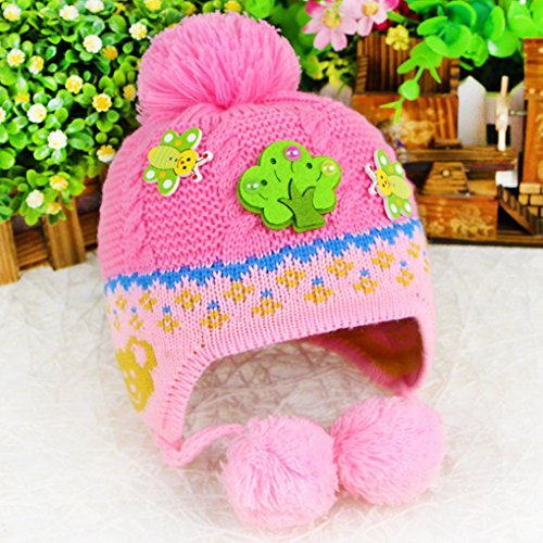 Happy Cherry 上品 カッコいい キッズ 帽子 ニットキャップ 秋冬 耳あて ミツバチ ボンボン付き お出かけ 旅行 通学 ピンク