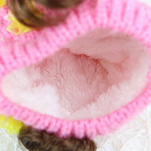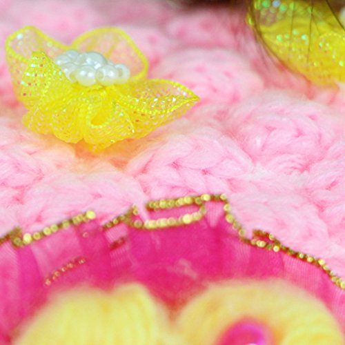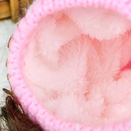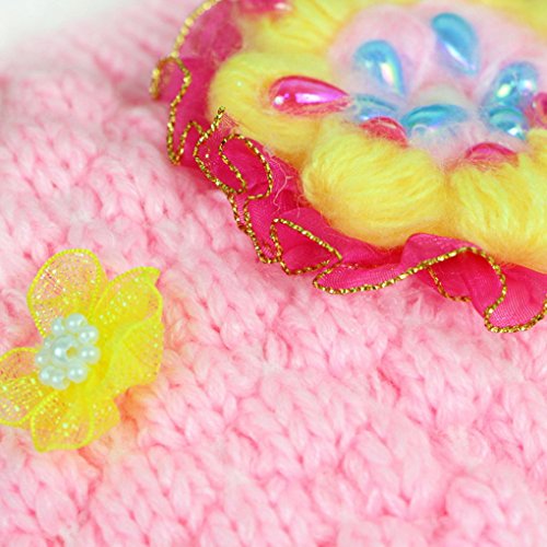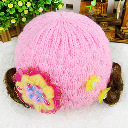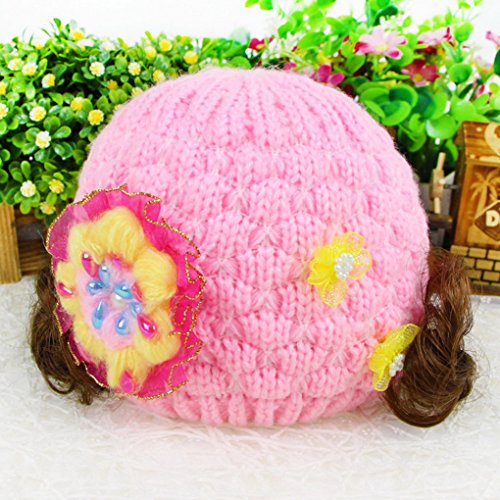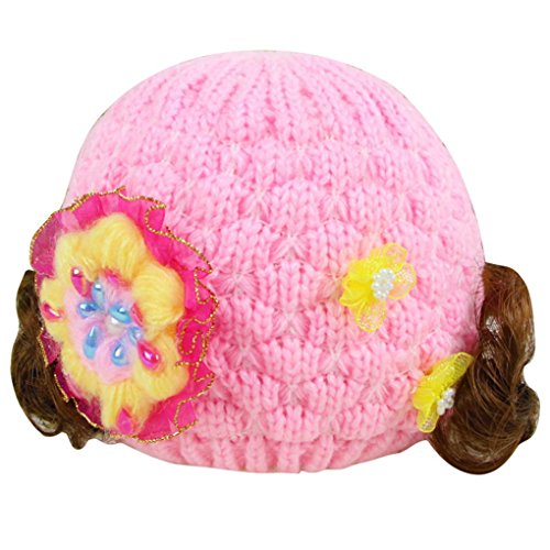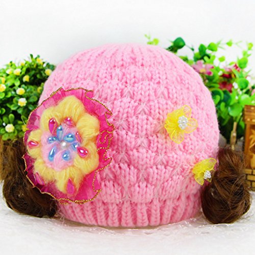 Happy Cherry キッズ 帽子 ニット キャップ 女の子 お洒落 防寒 冬 ふかふか 可愛い 綺麗い 鬘付き 花付き ピンク