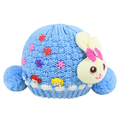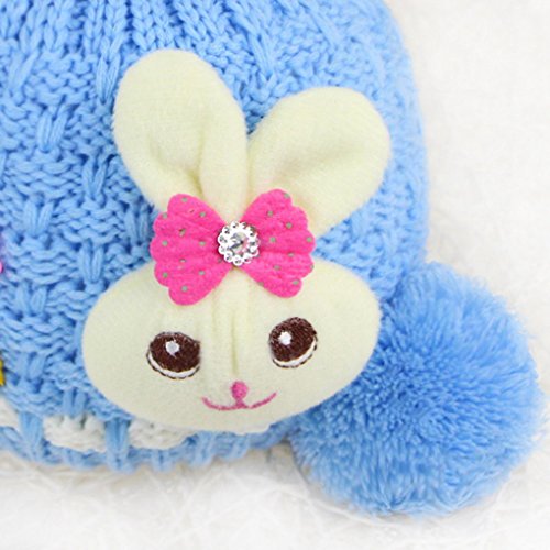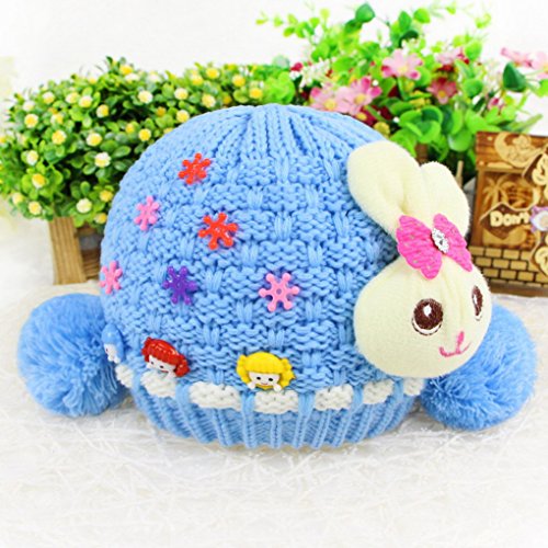 Happy Cherry 超人気 帽子 ニット キャップ 女の子 ベビー キッズ キュート 可愛い 綿 兎人形付き ボンボン付き プレゼント ブルー