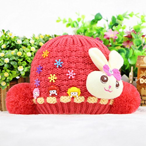 Happy Cherry 超人気 帽子 ニット キャップ 女の子 ベビー キッズ キュート 可愛い 綿 兎人形付き ボンボン付き プレゼント レッド