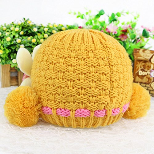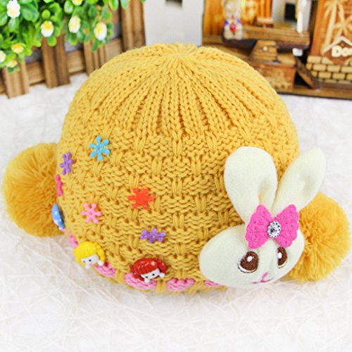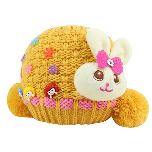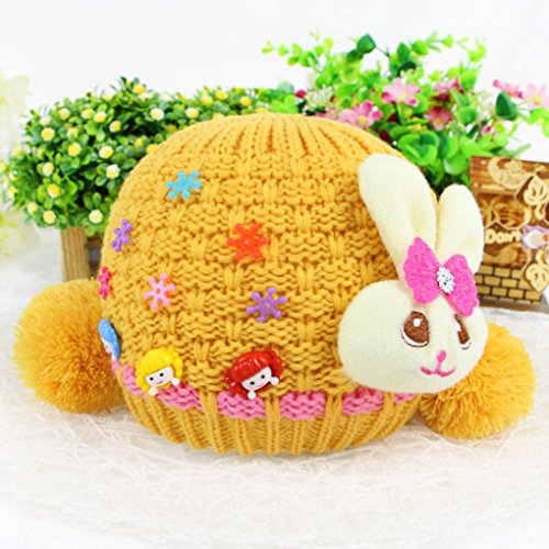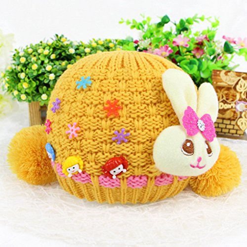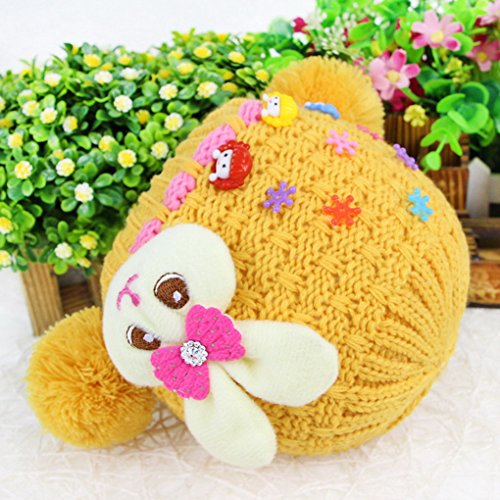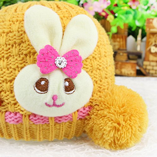 Happy Cherry 超人気 帽子 ニット キャップ 女の子 ベビー キッズ キュート 可愛い 綿 兎人形付き ボンボン付き プレゼント イエロー