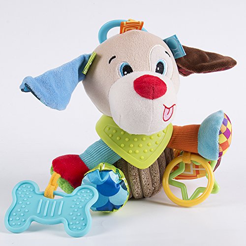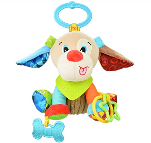 Happyハッピー耳 ベビーカー用おもちゃ ハンギングトイ 音鳴り 歯固め フック付き 可愛い動物ぬいぐるみ 知育玩具 視覚 聴覚に刺激 出産お祝い プレゼント (イヌ)