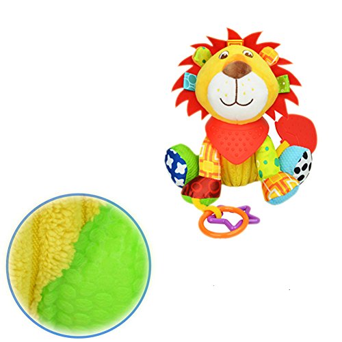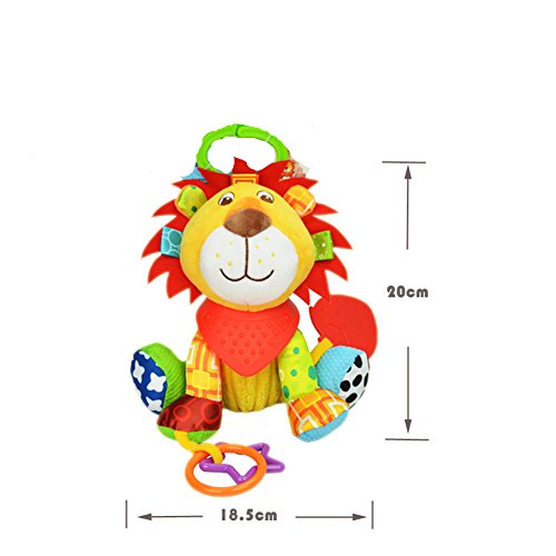 Happyハッピー耳 ベビーカー用おもちゃ ハンギングトイ 音鳴り 歯固め フック付き 可愛い動物ぬいぐるみ 知育玩具 視覚 聴覚に刺激 出産お祝い プレゼント (ライオン)