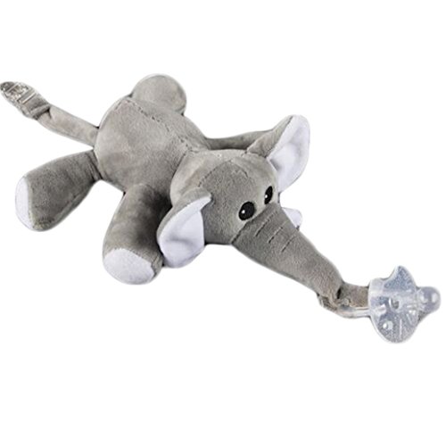 Happyハッピー耳 赤ちゃん ベビー用 おしゃぶり 可愛い動物ぬいぐるみ 両用 0ヶ月から おしゃぶりホルダー 全6種類動物 (象)