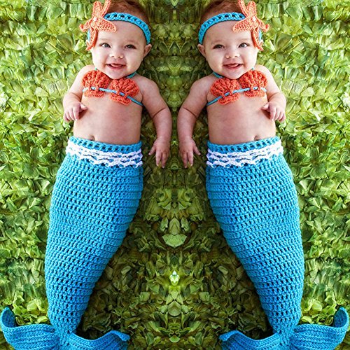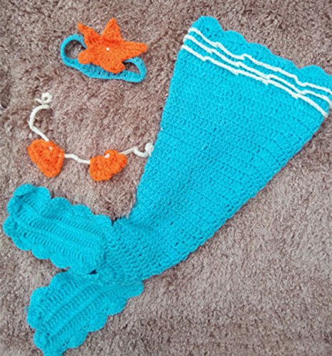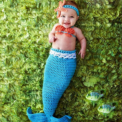 Happyハッピー耳 ベビー着ぐるみ 人魚姫 コスチューム 寝相アート 写真撮影 人魚姫仮装 3点セット かわいい 新生児 出産祝い 百日記念 記念撮影 ブルー (ブルー)
