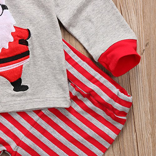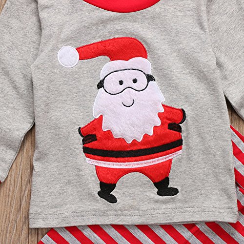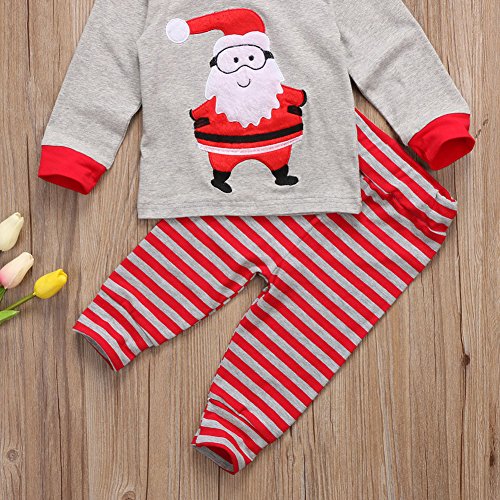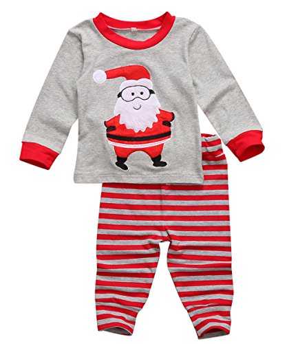 - かわいいデザイン:クリスマス風の2点セットです。サンタ柄長袖tシャツ&縞模様ズボンで、ファッション性に優れています。