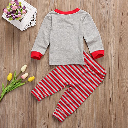 Happyハッピー耳 子供服 女の子 男の子 クリスマス風 長袖 tシャツ&ロングパンツ 2点セット ストライプ かわいい パジャマ 春 秋 (100(1-2歳))