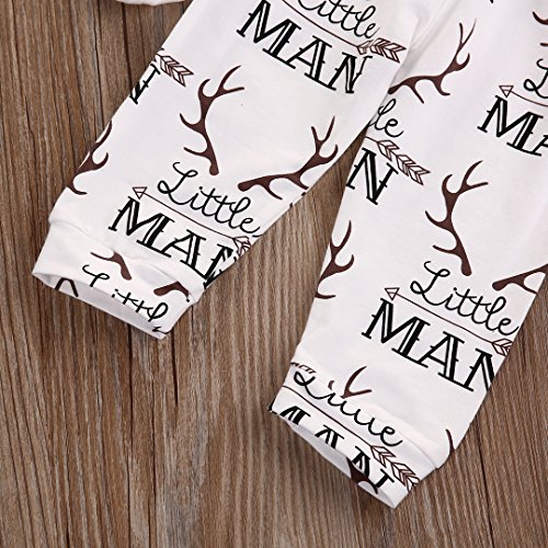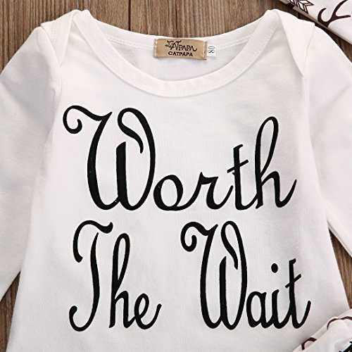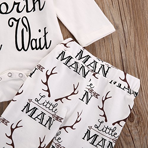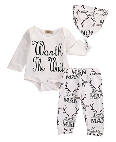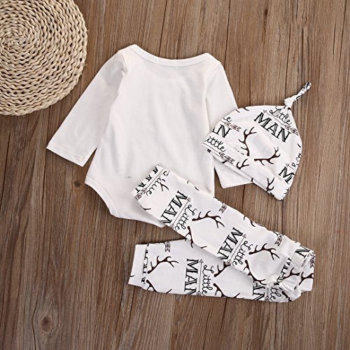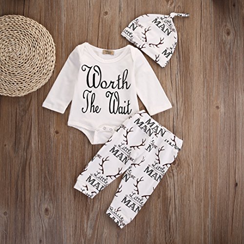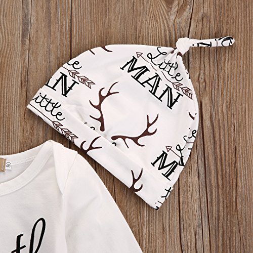 Happyハッピー耳 ロンパース ズボン ベビー 帽子付き 三点セット 夏 ロングスリーブ 男女兼用 レター 鹿角 プリント ホワイト 可愛い 70 80 90 95 (80, WORTH プリント)