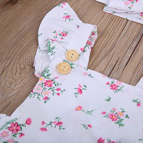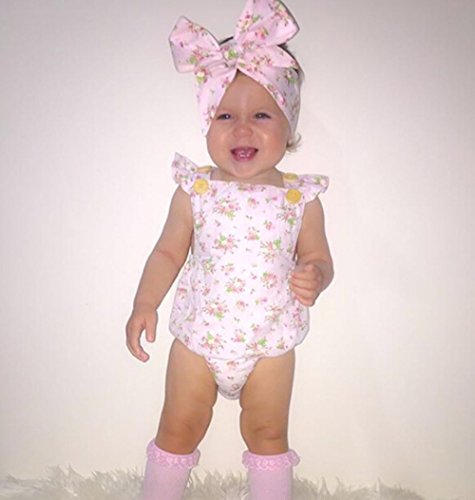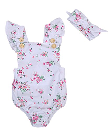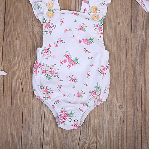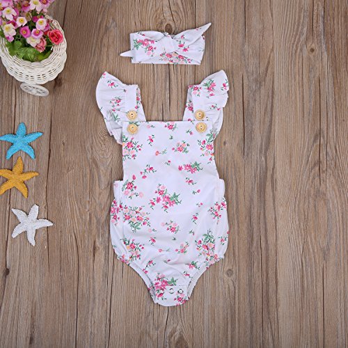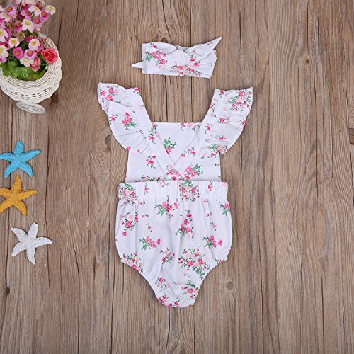 Happyハッピー耳 ロンパース 新生児 女の子 夏 ノースリーブ 花柄 ふわふわ フライスリーブ ティアラ付き 可愛い 白 70 80 90 100 (100)