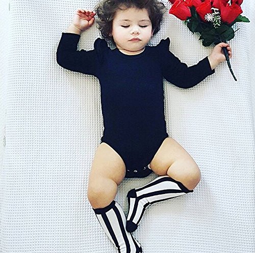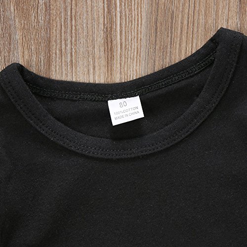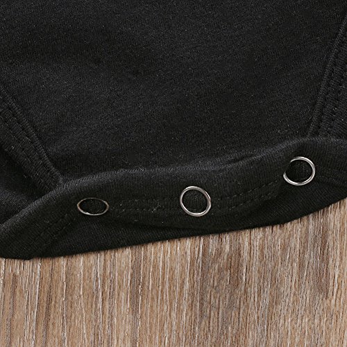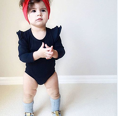 Happyハッピー耳 ベビー 女の子 無地 長袖 ロンパース かわいい ふわふわ袖 カバーオール シンプル 黒 白 (80, ブラック)
