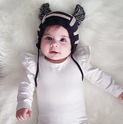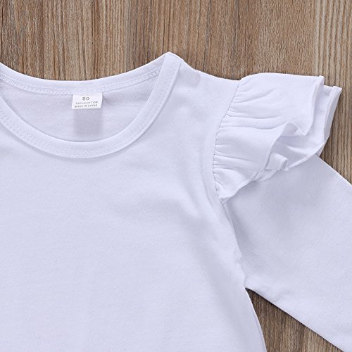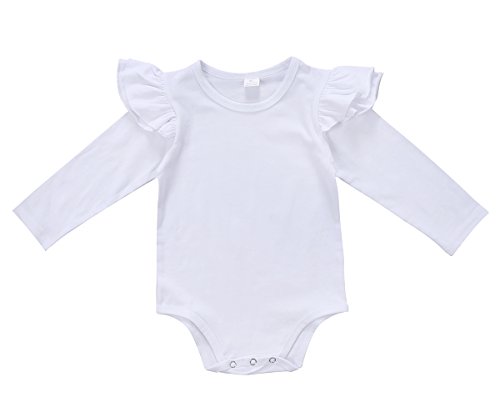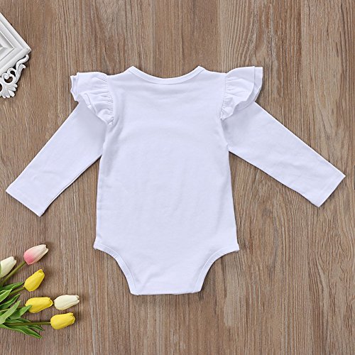 Happyハッピー耳 ベビー 女の子 無地 長袖 ロンパース かわいい ふわふわ袖 カバーオール シンプル 黒 白 (100, ホワイト)