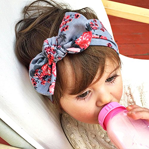 Happyハッピー耳 ベビー 女の子 可愛いリボン 花柄ヘアバンド 出産祝い 記念撮影 初節句に (C)