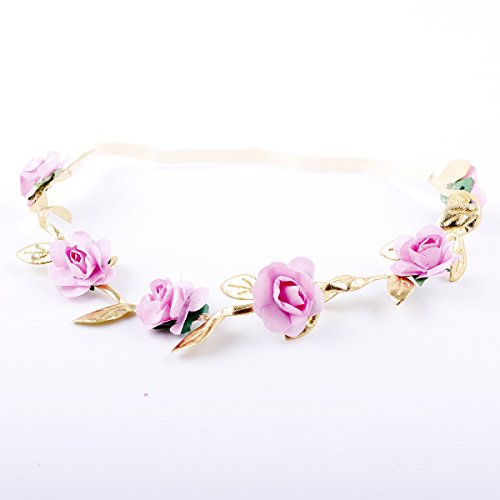 Happyハッピー耳 ベビー 女の子 薔薇ヘアバンド フラワーのカチューシャ 出産祝い 記念撮影 初節句 入学式 卒業式に (ピンク)