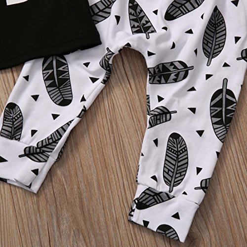 Happyハッピー耳 ベビー服 女の子 男の子 夏 レターと羽プリント 半袖シャツ&ロングパンツ 上下セット 可愛い (100)