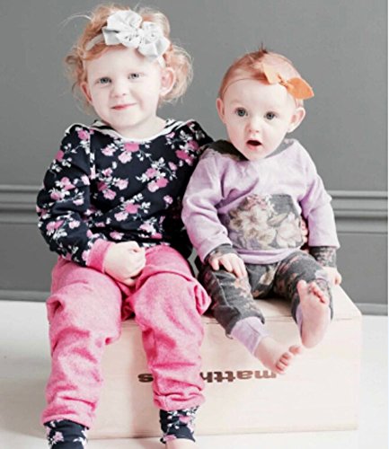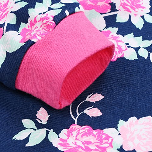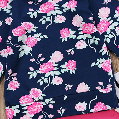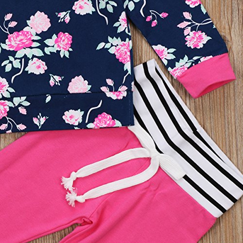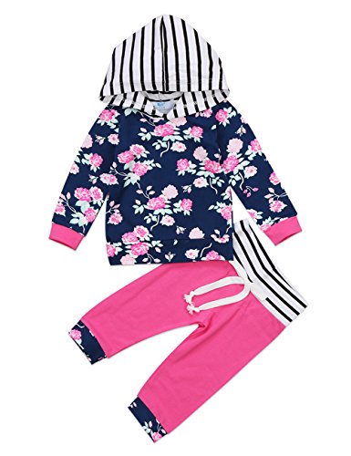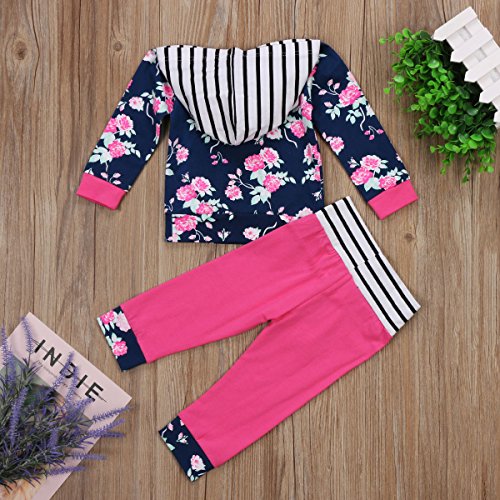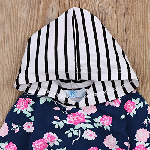 Happyハッピー耳 新生児 女の子 花柄 縞模様 長袖パーカー&ロングパンツ 上下セット フード付き かわいい 春 秋 (70)