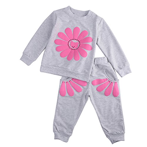 Happyハッピー耳 子供服 女の子 長袖 tシャツ&ロングパンツ 上下セット 花柄 ベビー かわいい パーカー パジャマ コットン 0~4歳設定 春秋 5色 (グレー, 100)