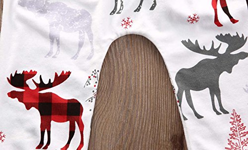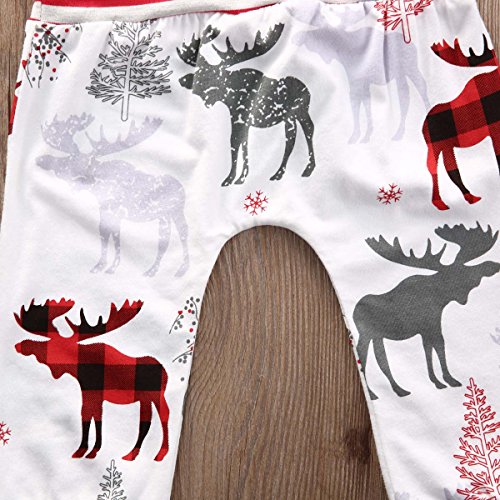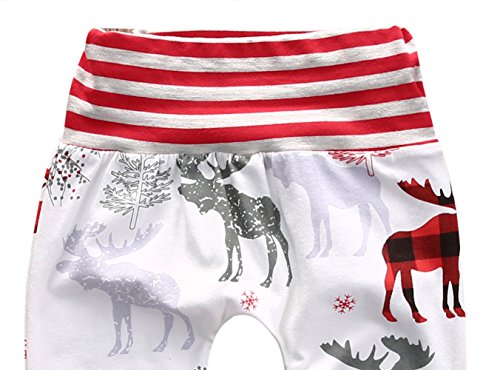 Happyハッピー耳 ベビー服 ズボン コットン 鹿 プリント ストライプ ホワイト レッド 男女兼用 春 (100)