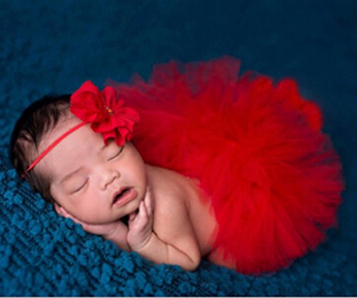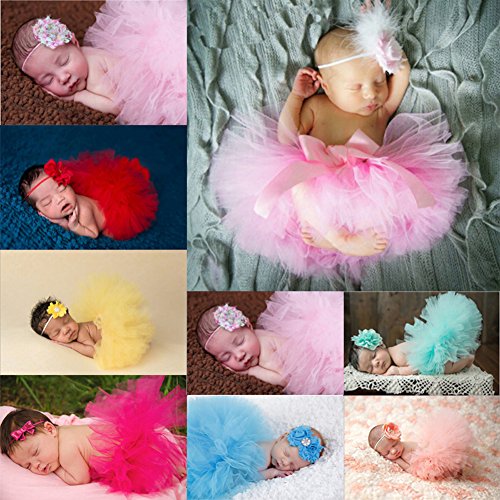 Happyハッピー耳 新生児 ベビー 女の子 写真プロップ チュチュスカート フリル ヘッドバンド付き 写真撮りの衣装 セット お嬢様風 記念撮影 出産祝いギフト 寝相アート 百日祝い 全9色 (#1)