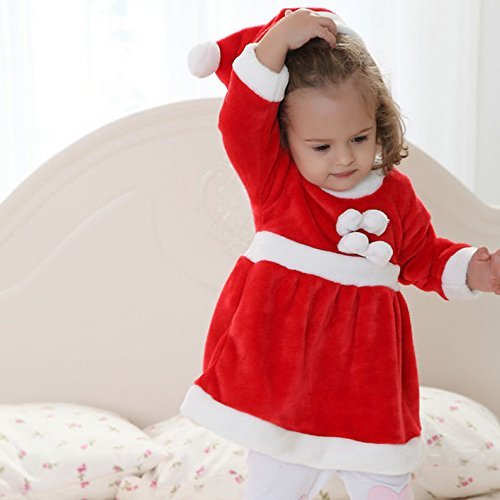 サンタベビー 女の子 ワンピース 可愛い サンタクロース 衣装 サンタ服 キッズ 赤ちゃん 幼児 子供 仮装 コスチューム クリスマスグッズ クリスマス サンタ帽子付 Happy-Online (90)