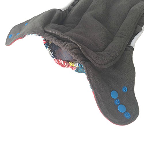 HappyEndings AI2TM (All-in-Two) Charcoal Bamboo Diaper comes with an absorbent snap-in 5 layer bamboo charcoal insert and an extra pocket for your extra heavy wetter. Trim All in One design with adjustable Small, Medium, Large 3x3 snaps + hip snaps, fits babies 8-35 lbs. We offer covered double leg gussets for baby's comfort.;The All in two diaper system is similar to an AIO, but the insert snaps into the top of the diaper. This offers the benefit of reusing the waterproof outer shell when only the insert is soiled (replace with another insert), as well as faster drying time after a wash.;Soft Stay-Dry Bamboo Charcoal Fleece Inner Lining -Great for babies who sleep through the night and/or get rashes due to wetness. The 5 layer charcoal bamboo insert is very absorbent and soft with 3 layers of microfiber sandwiched between two layers of bamboo charcoal. Bamboo Charcoal offers all of the advantages of bamboo: thermal regulating, antibacterial qualities, highly absorbent, wicks moisture from skin.;Bonus features: optional use of a pocket opening for your extra heavy wetter, nap, or night time. The Leak Guard on the front inside of the diaper is ideal for tummy sleepers and lil' guys. Gentle covered double elastic around the legs prevents messes.;Simple & Efficient: This is a great diaper for the parent who wants minimal wash and prep time. This diaper is faster drying than an all in one with an easy snap-in insert for quick use after wash.