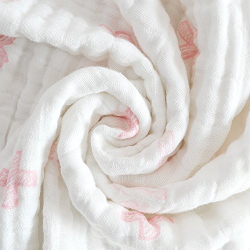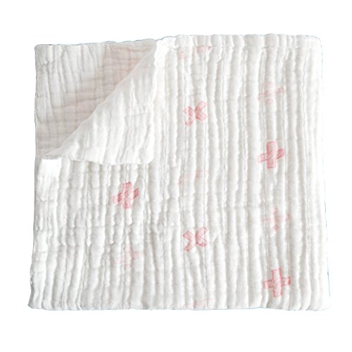 Happylifehere 赤ちゃんおくるみ 6重ガーゼ 綿100 お風呂 赤ちゃん ベビー ガーゼケット タオルケット ひざ掛け 帽子付き 85*85/95*95 (85*85, ピンク)